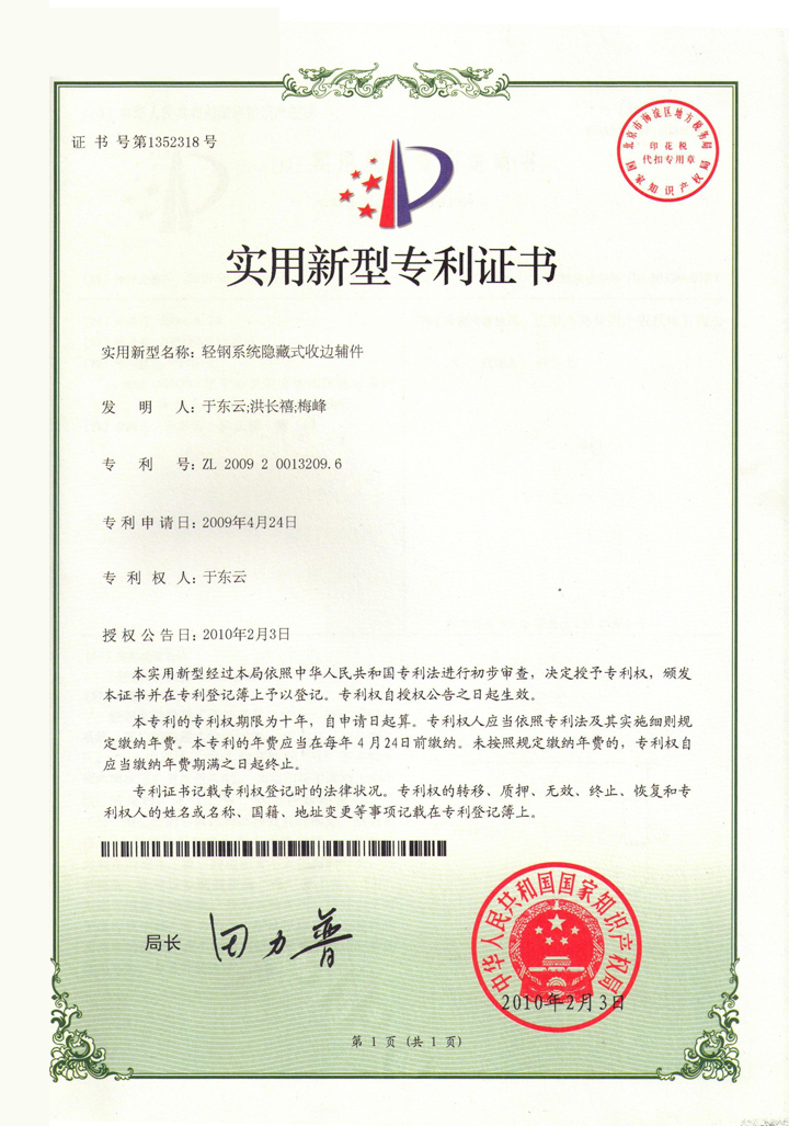 輕鋼系統(tǒng)隱藏式收邊輔件專利