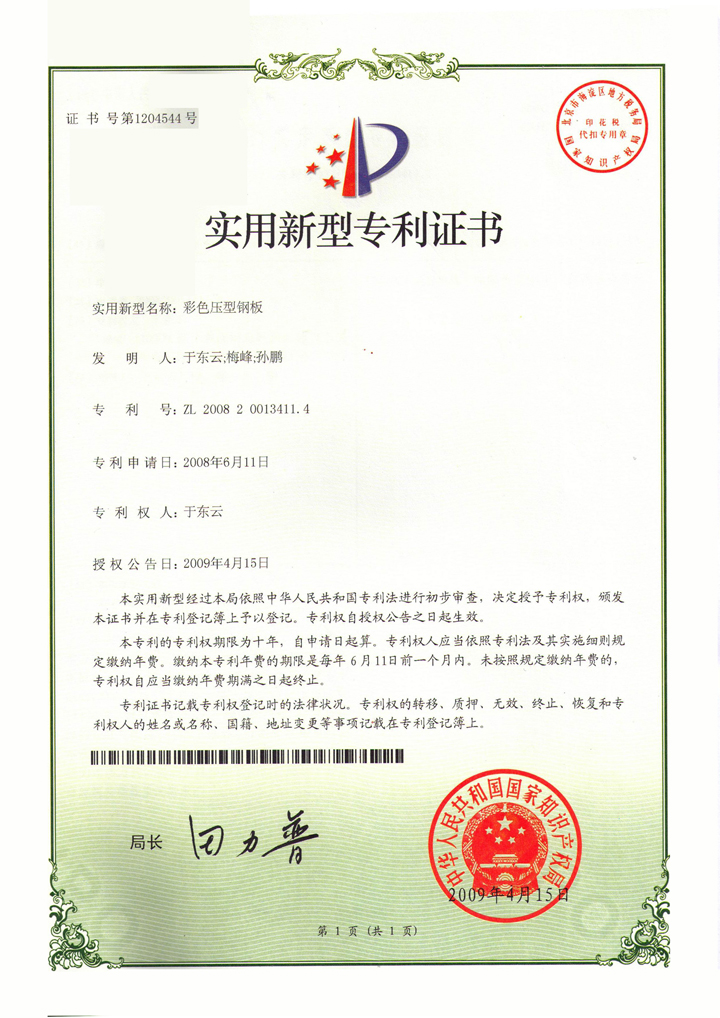 彩色壓型鋼板專利