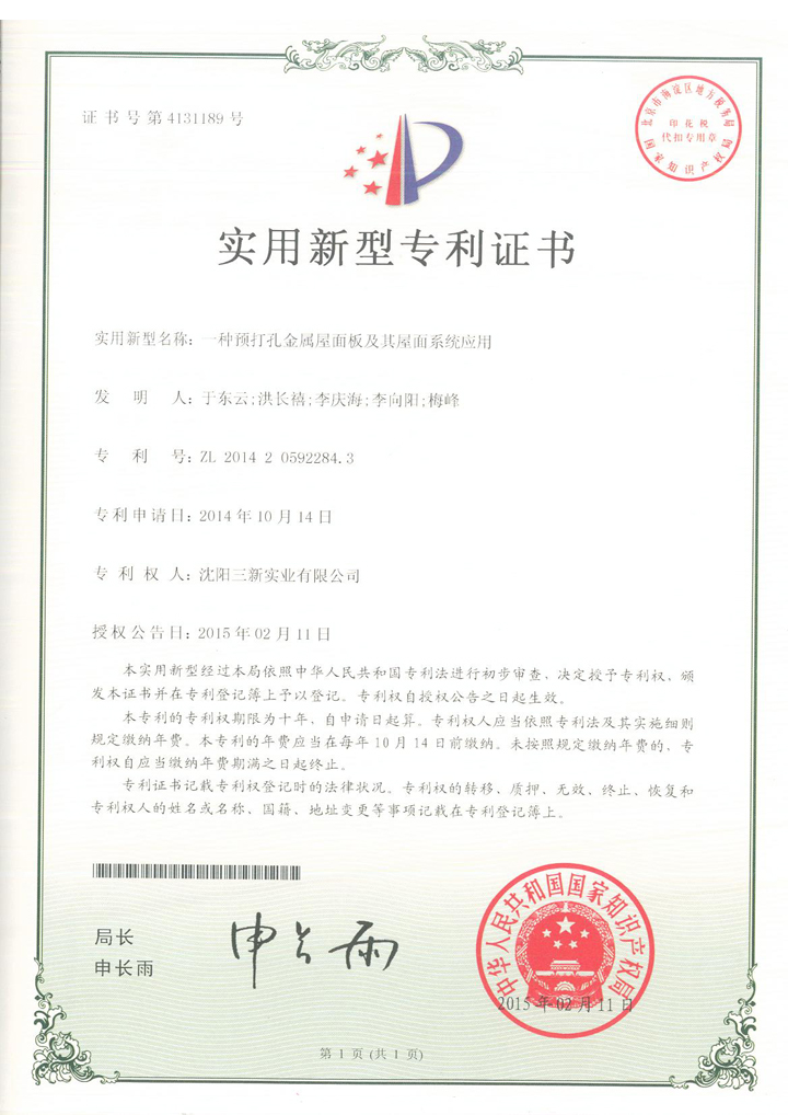 一種預(yù)打孔金屬屋面板及其屋面系統(tǒng) |