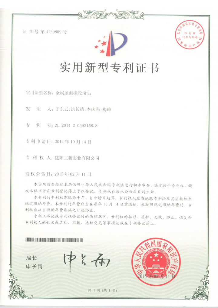 金屬屋面橡膠堵頭專利 |