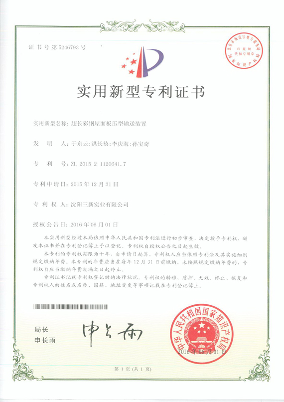 超長(zhǎng)彩鋼屋面板壓型輸送裝置 |
