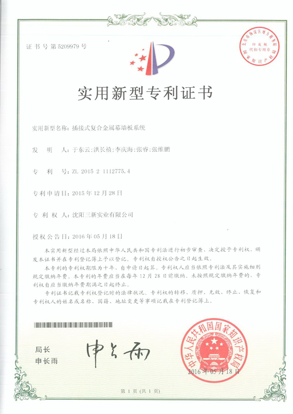 插接式復(fù)合金屬幕墻板系統(tǒng) |