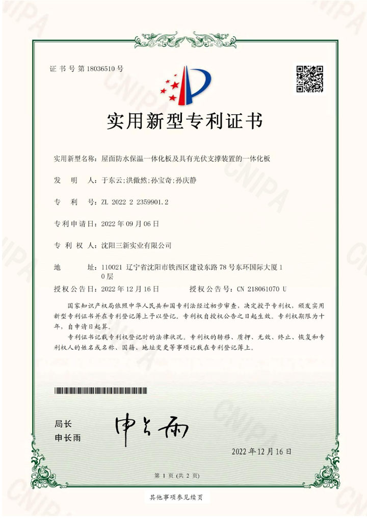 自鎖式一體化光伏屋面裝置 |