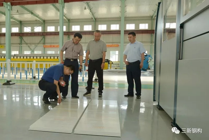 省廳領(lǐng)導(dǎo)在公司總經(jīng)理洪長禧的陪同下參觀了公司裝配式建筑及幕墻生產(chǎn)基地和生產(chǎn)線,并對三新裝配式建筑實體模型和部品進行了詳細(xì)的了解。曹廳長、王處長對三新裝配式鋼結(jié)構(gòu)建筑體系及先進的生產(chǎn)裝備給予了高度的評價,認(rèn)為產(chǎn)品設(shè)計理念、制作工藝、安裝水平達到國內(nèi)領(lǐng)先。