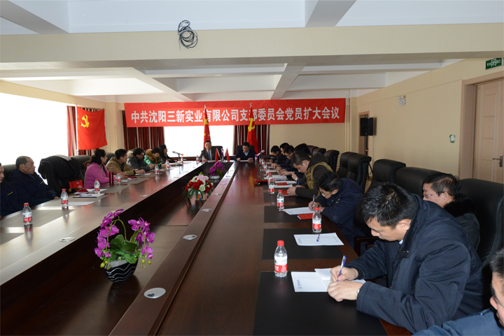 2014年12月13日上午9:30,中共沈陽三新實業(yè)有限公司支部委員會黨員擴大會議在廠區(qū)綜合辦公樓四樓會議室召開。會議公布了本年展黨員名單,新黨員進行了表態(tài)發(fā)言;會議討論并確定了明年發(fā)展黨員計劃;全體參會人員一同學習了黨章內(nèi)容。黨支部書記洪長禧總經(jīng)理以“在公司工作中如何發(fā)揮黨員先進模范帶頭作用“為題做了主旨發(fā)言。最后由黨支部書記于東云董事長領誓,新黨員向黨旗宣誓并進行佩戴黨徽儀式。通過本次會議,全體參會人員受到了一次愛黨教育及思想的洗禮。