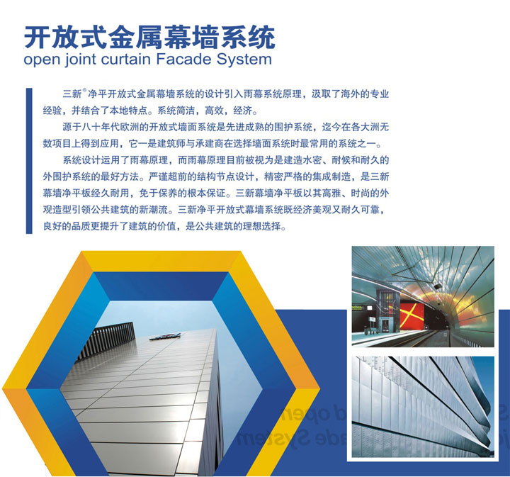 • 三新工業(yè)金屬幕墻系統(tǒng)----是公司多年來設計、施工實踐的結晶,工藝成熟、外觀時尚...