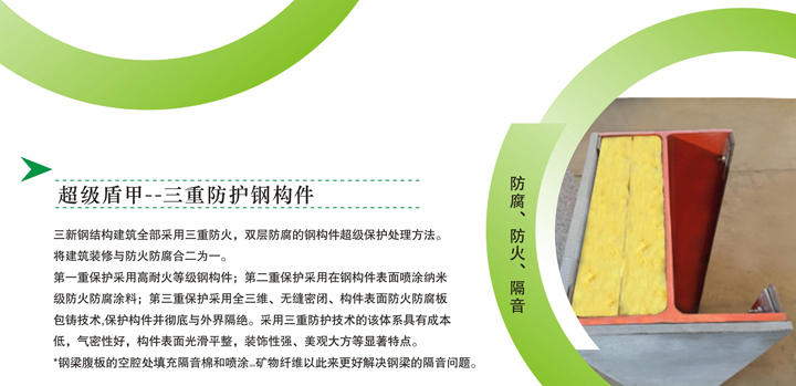 • 三新——綠色建筑領(lǐng)航者。新技術(shù),新工藝,新材料,時(shí)尚,環(huán)保,快捷