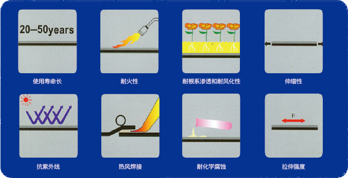 ◆、卷材采用熱風(fēng)焊接,接縫剝離強(qiáng)度高,焊接便利且可靠;