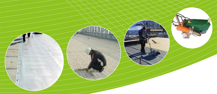 為確保卷材防水層在屋面的整體性,關(guān)鍵之一是搭接處理,通過(guò)熱焊接使相鄰卷材搭接形成高于卷材強(qiáng)度的粘結(jié)層,形成卷材整體的連續(xù)密封防水層。 TPO卷材與屋面的固定方式: