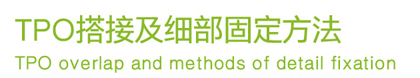 ①、大面采用空鋪加機(jī)械固定的方式。即TPO卷材空鋪于基層,在相鄰的下層卷材搭接區(qū),用機(jī)械緊固螺釘和固定墊片與基層固定,上層卷材與下層卷材的搭接采用熱風(fēng)焊熔接,使卷材連接成一個(gè)整體密封的防水層。